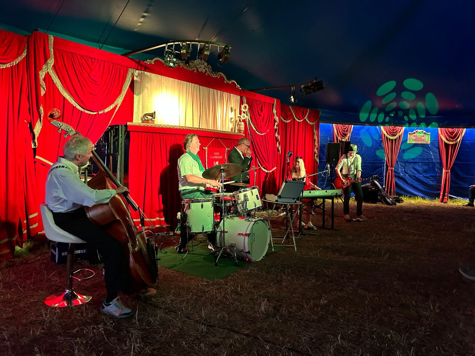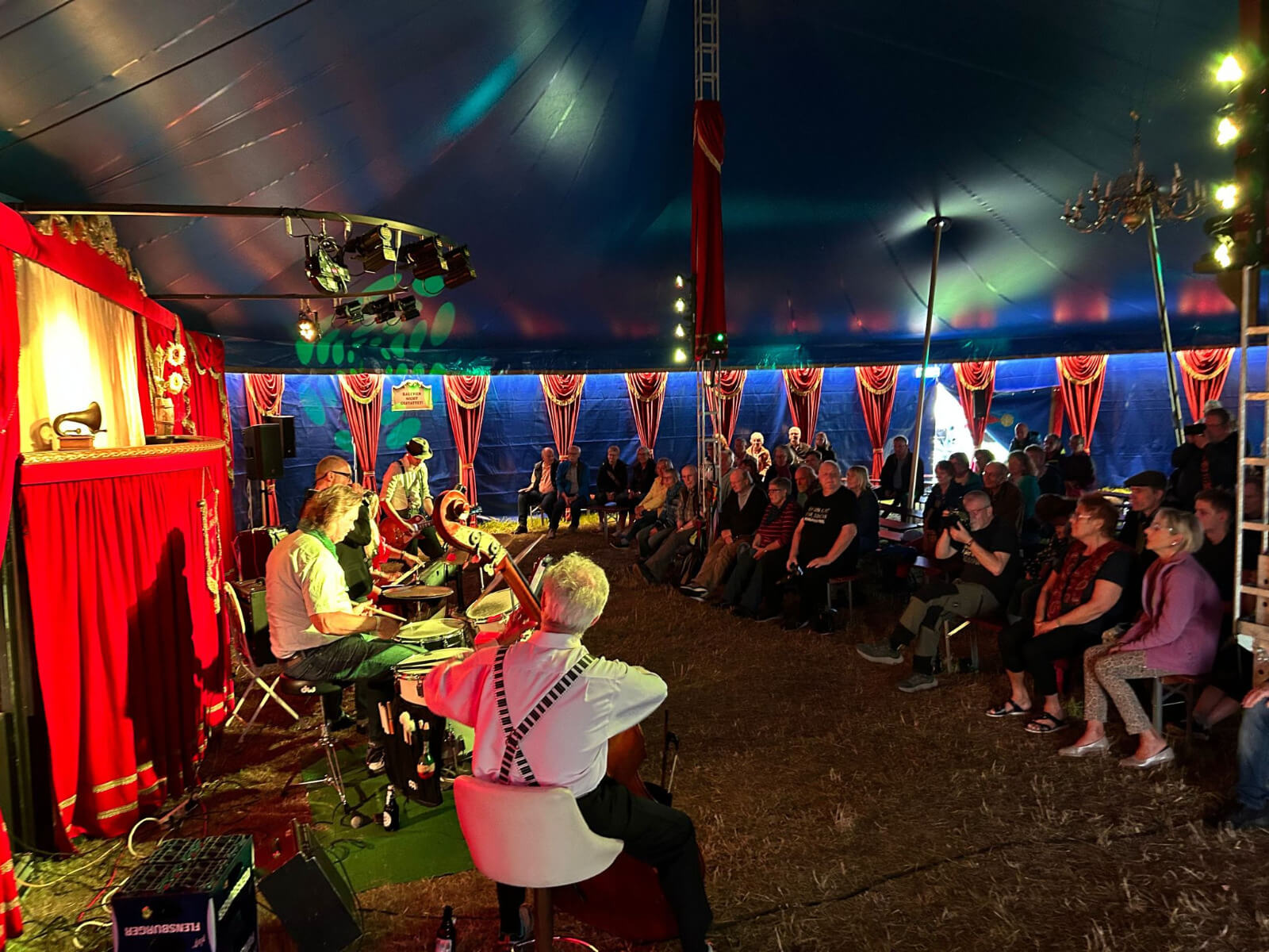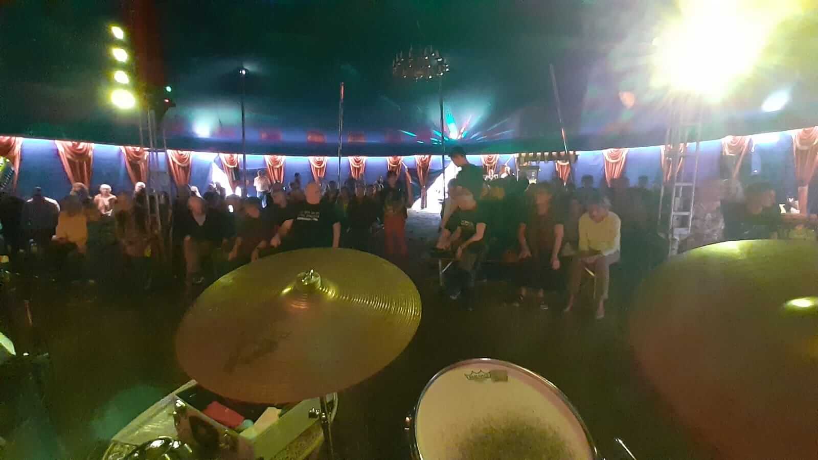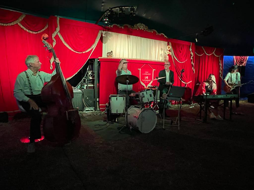 Unser Auftritt war als Open-Air-Event geplant, doch das Wetter hatte andere Pläne. Dank eines Regenschauers hatten wir das Glück, in ein Zirkuszelt umziehen zu dürfen. Für mich persönlich war das ein magischer Moment. Seit meiner Kindheit liebe ich den Zirkus, und jetzt, in der Manege zu stehen und zu spielen, war ein echtes Highlight.
