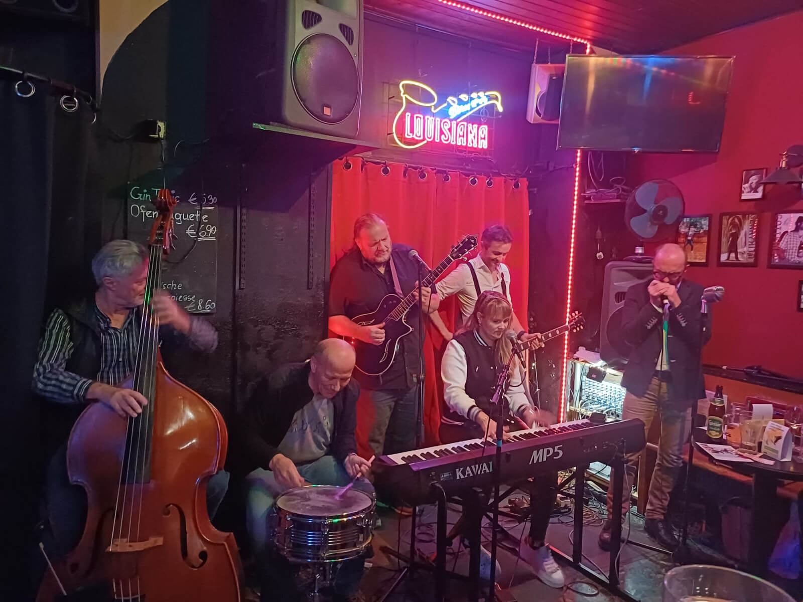 Besonders bemerkenswert ist die Art und Weise, wie diese erfahrenen Musiker mit dem Publikum und den Mitmusikern während eines Songs kommunizieren. Diese Fähigkeit, die Stimmung des Moments einzufangen und in die Musik einfließen zu lassen, ist etwas, das wir stetig üben und perfektionieren. Jeder Auftritt wird so zu einem Riesenspaß und gleichzeitig zu einem unverzichtbaren Lernprozess. Das Musizieren im Louisiana Blues Pub, inmitten der Erinnerungen an amerikanische und österreichische Blues-Legenden, war ein besonders erhebendes Erlebnis. Es ist ein Ort, der die Geschichte und Seele des Blues atmet, und dort zu spielen, fühlte sich an wie eine Anerkennung unserer eigenen musikalischen Reise.